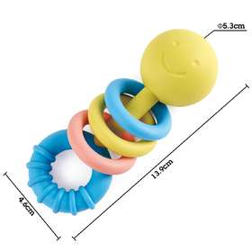 Подвижные и приподнятые резиновые кольца на прорезывателе способствуют тактильным исследованиям, в то время как мягкие цвета стимулируют остроту зрения, а мягкий дребезжащий звук стимулирует слуховое восприятие. Изготовленная из безопасного, ароматного, экологически чистого материала на основе риса, синтезированного с использованием японского риса, игрушка для прорезывания зубов подходит для всех возрастов. Встряхните, чтобы издать забавный тихий дребезжащий звук!