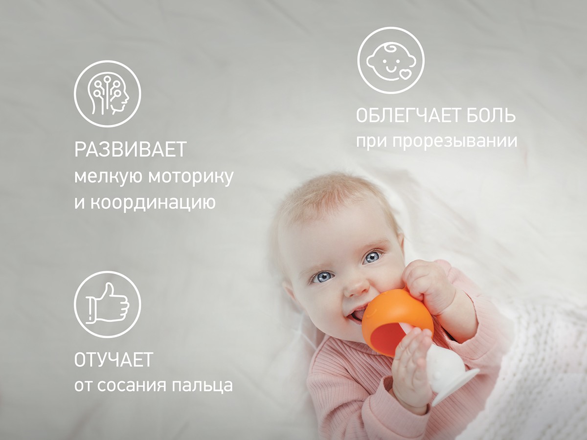 Материал: прорезыватель – силикон, держатель – полиэстер, АБС-пластик