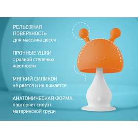 Силиконовый прорезыватель "Грибочек" с держателем в футляре (оранжевый) ROXY-KIDS арт.RST-001-O