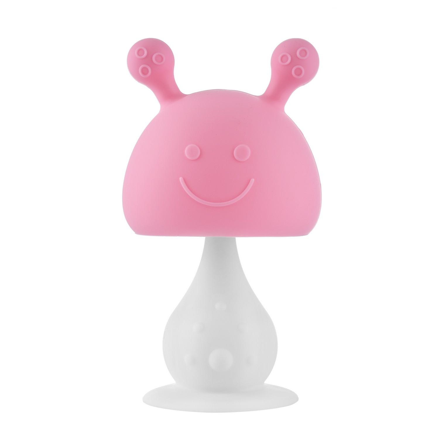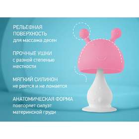 Силиконовый прорезыватель "Грибочек" с держателем в футляре (розовый) ROXY-KIDS арт.RST-001-P