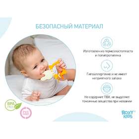 Прорезыватель для зубов FOX TEETHER от ROXY-KIDS подходит для всех стадий прорезывания зубов у малышей. Он состоит из элементов различной степени жесткости, что позволяет малышу использовать на протяжении всего времени прорезывания. На начальном этапе, когда у малыша раздражены десны, он может чесать их о мягкую рельефную голову лисенка. На завершающем этапе малыш сможет грызть более твердое тело и твердый хвост для лучшего эффекта. Прорезыватель сделан из безопасных гипоаллергенных материалов (термоэластопласта и полипропилена), так что ребенок может грызть его целыми днями. Еще одна отличительная особенность FOX TEETHER это тело, сделанное в форме кольца, которое малыш сможет удобно держать. В ассортименте ROXY-KIDS прорезыватели FOX TEETHER представлены в нескольких цветах. Соответствует стандартам безопасности товаров для детей.
