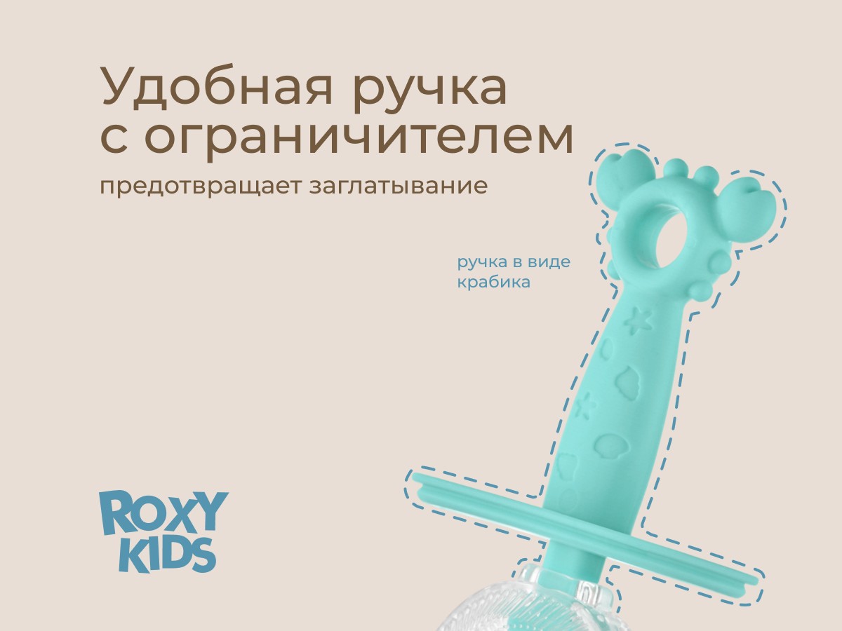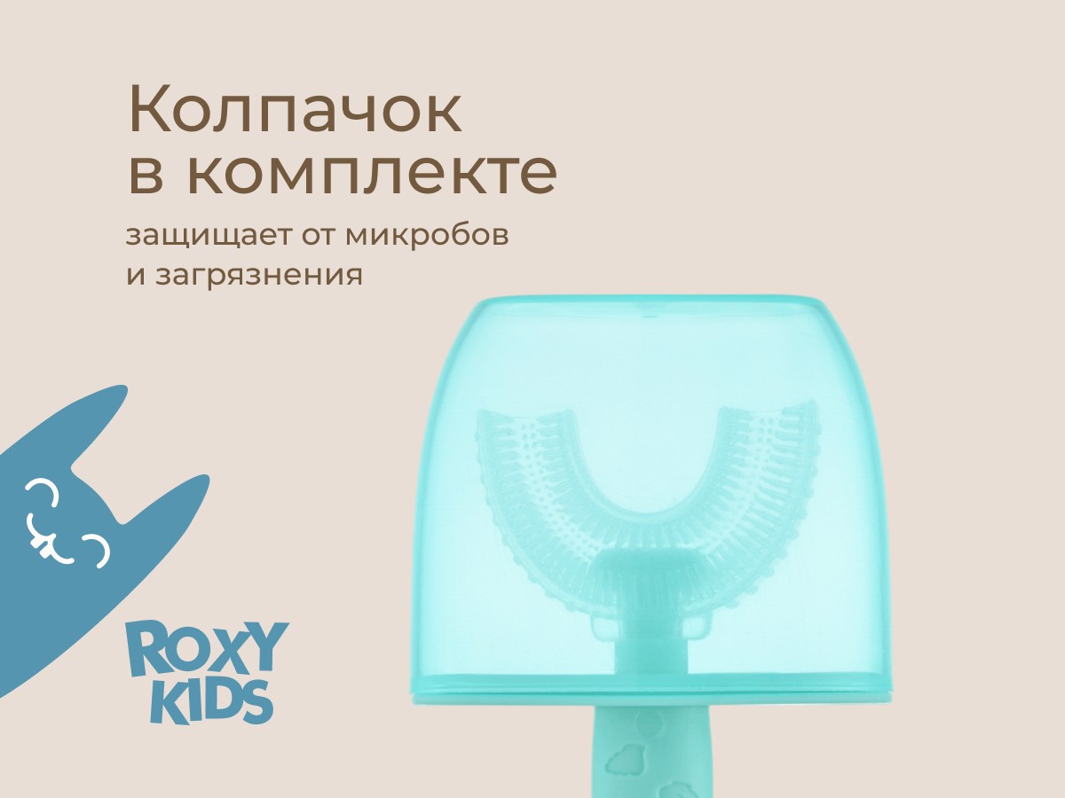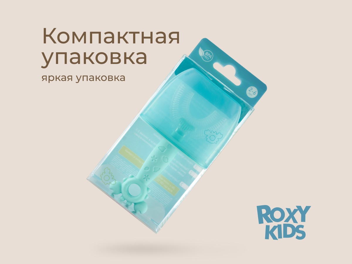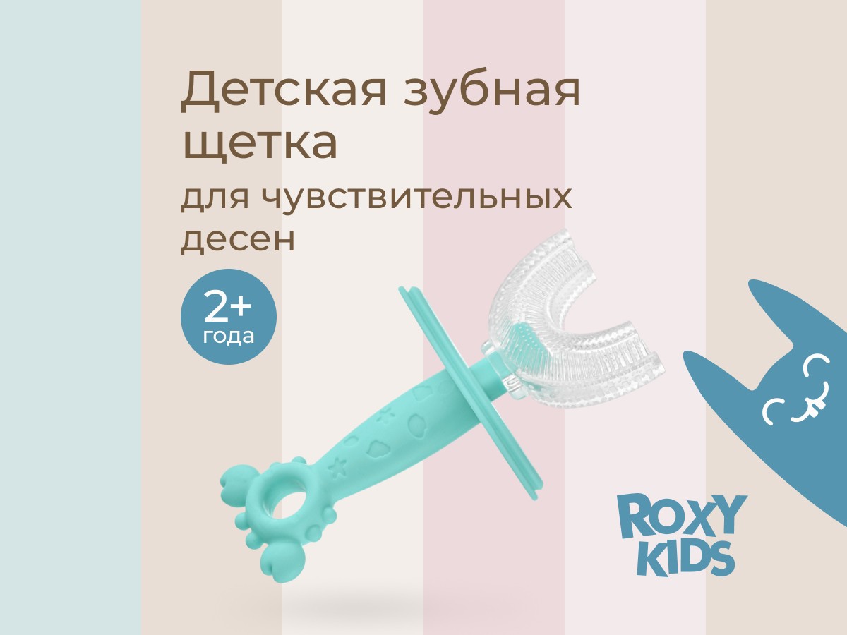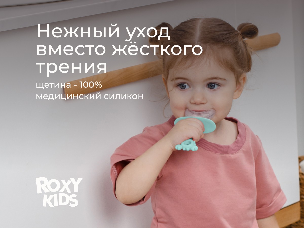 Силиконовая зубная щетка-массажер LITTLE CRAB от ROXY-KIDS превращает процесс обязательной ежедневной чистки зубов в увлекательную игру. U-образная щетка в форме капы покрывает 99% зубов, а мягкие силиконовые ворсинки бережно массируют десны, улучшают кровообращение и удаляют зубной налет. Зубную щетку можно использовать в качестве прорезывателя или для нанесения на десны лечебного успокаивающего геля при прорезывании зубов. Специальный ограничитель предотвращает заглатывание щетки. В комплект входит герметично закрывающийся колпачок для хранения, который защитит щетку от бактерий, микробов и загрязнения.