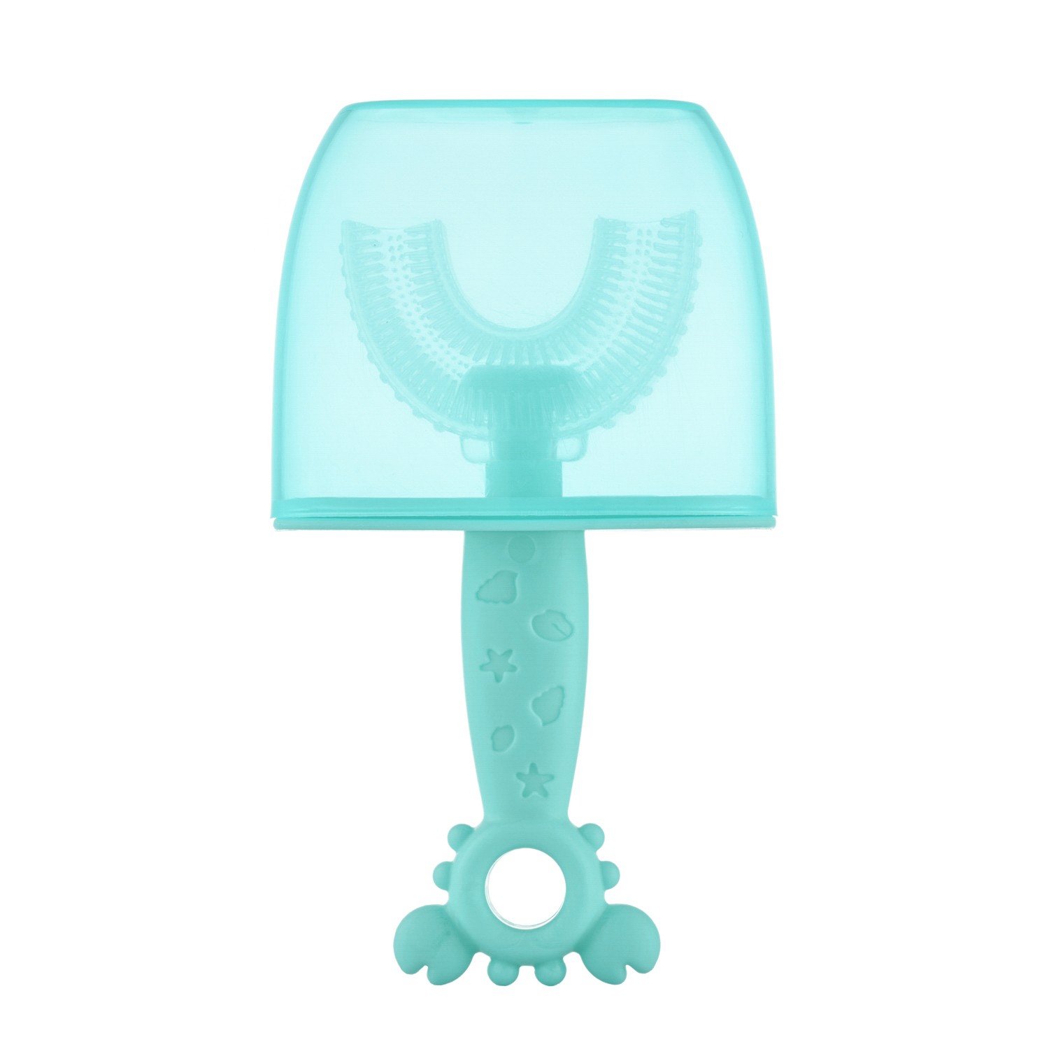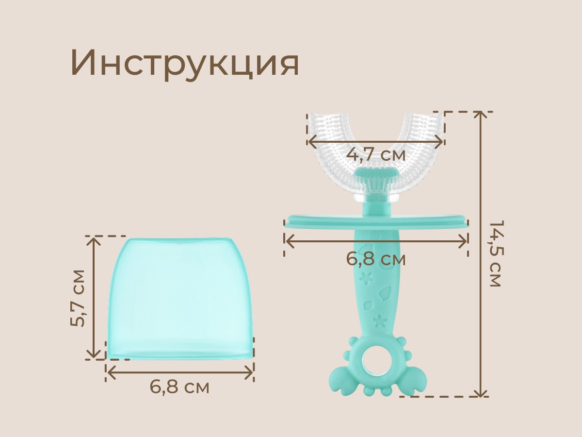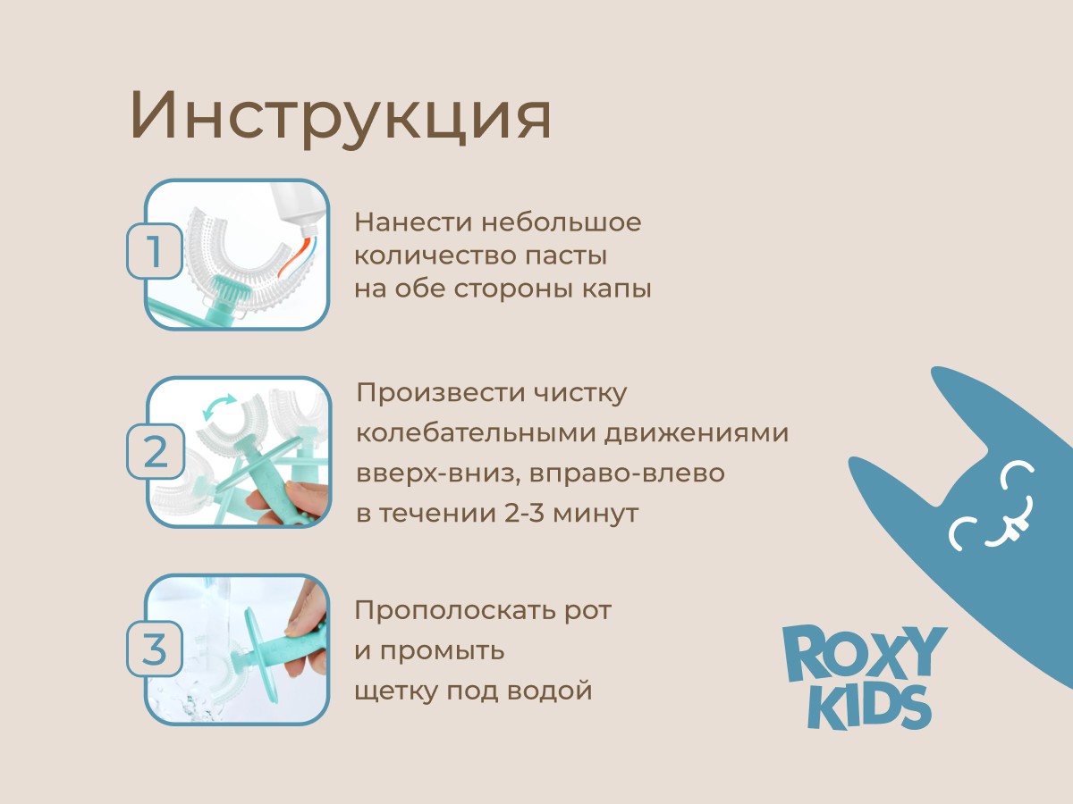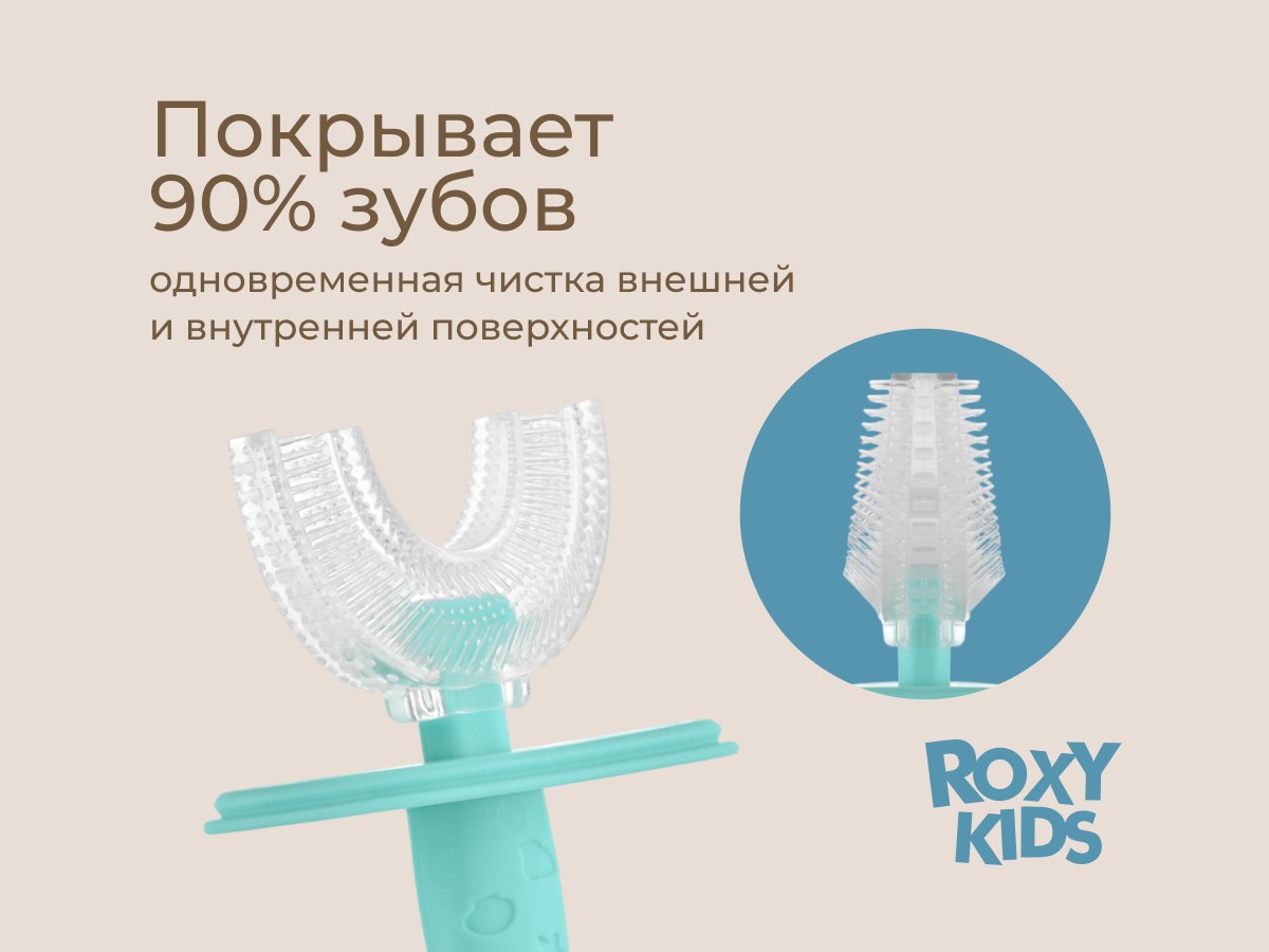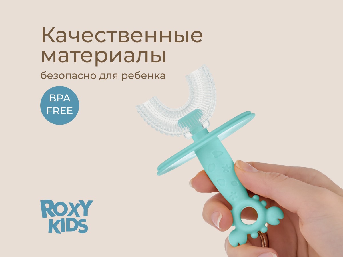 Силиконовая зубная щетка-массажер LITTLE CRAB от ROXY-KIDS превращает процесс обязательной ежедневной чистки зубов в увлекательную игру. U-образная щетка в форме капы покрывает 99% зубов, а мягкие силиконовые ворсинки бережно массируют десны, улучшают кровообращение и удаляют зубной налет. Зубную щетку можно использовать в качестве прорезывателя или для нанесения на десны лечебного успокаивающего геля при прорезывании зубов. Специальный ограничитель предотвращает заглатывание щетки. В комплект входит герметично закрывающийся колпачок для хранения, который защитит щетку от бактерий, микробов и загрязнения.