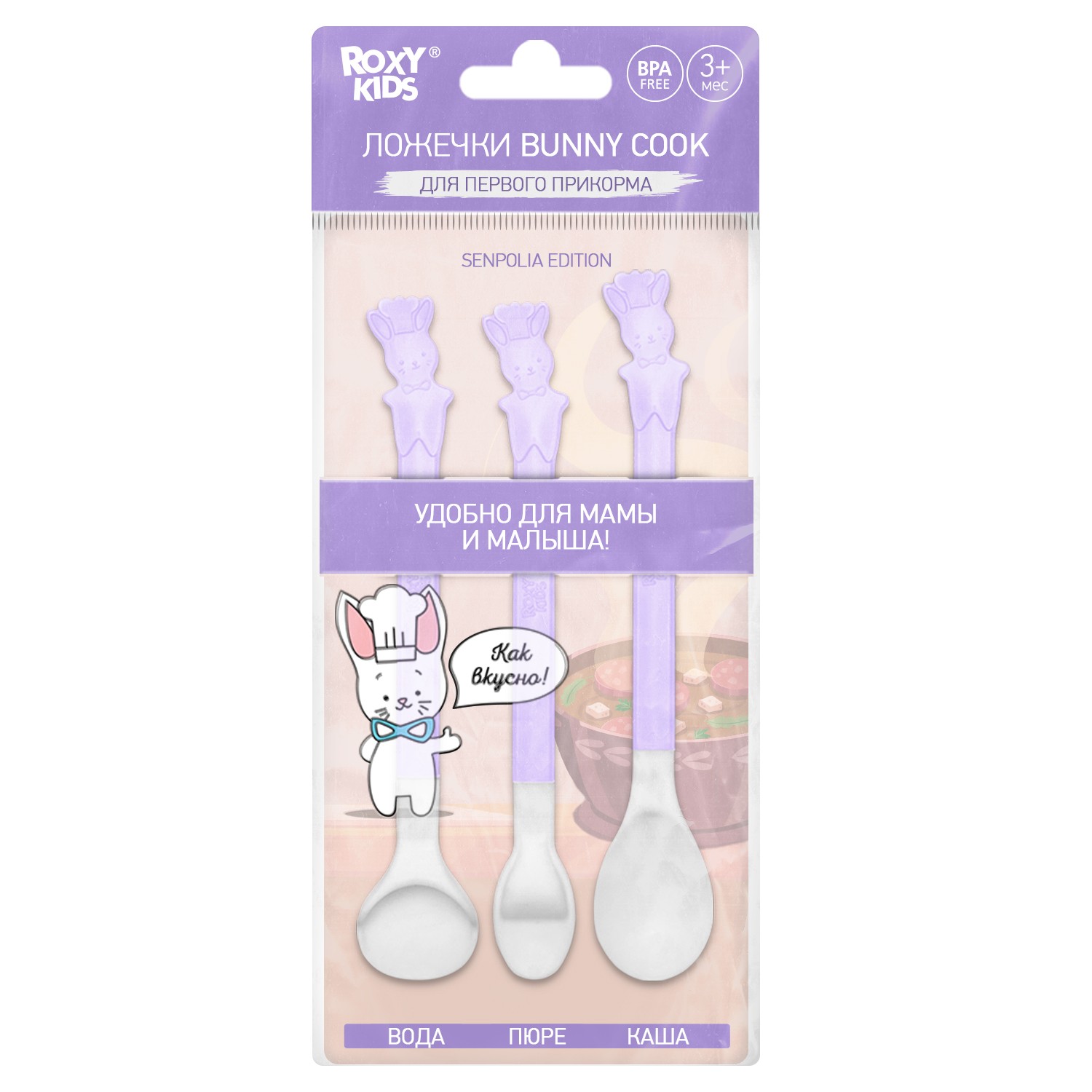 Набор ложек для первого прикорма BUNNY COOK от ROXY-KIDS (сиреневый) арт.RFD-020-SP