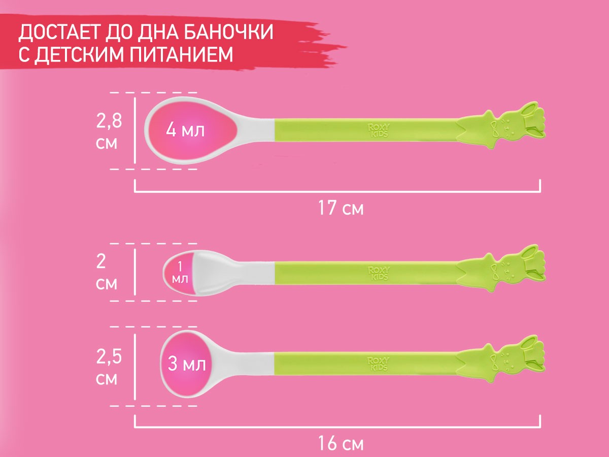 Набор детских ложечек BUNNY COOK от ROXY-KIDS – идеальное решение для первого прикорма! В набор входят 3 ложки различного объема для разных типов пищи. Глубокая ложка предназначена для жидкостей, таких как вода, молоко, бульоны, супы и соки. Неглубокие ложечки идеально подходят для густых продуктов, таких как каши, йогурты и пюре. Благодаря мягкому материалу и специальным ограничителям ложки не травмируют нежную полость рта малыша и абсолютно безопасны в использовании. Приборы разработаны с учетом специфики развития малышей и облегчат переход от бутылочки к твердой пище. Удобная рукоятка в виде милого зайчика поднимет настроение родителям и малышу! Сделайте каждый прием пищи простым и комфортным с ROXY-KIDS!