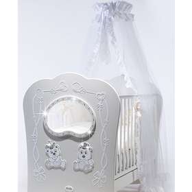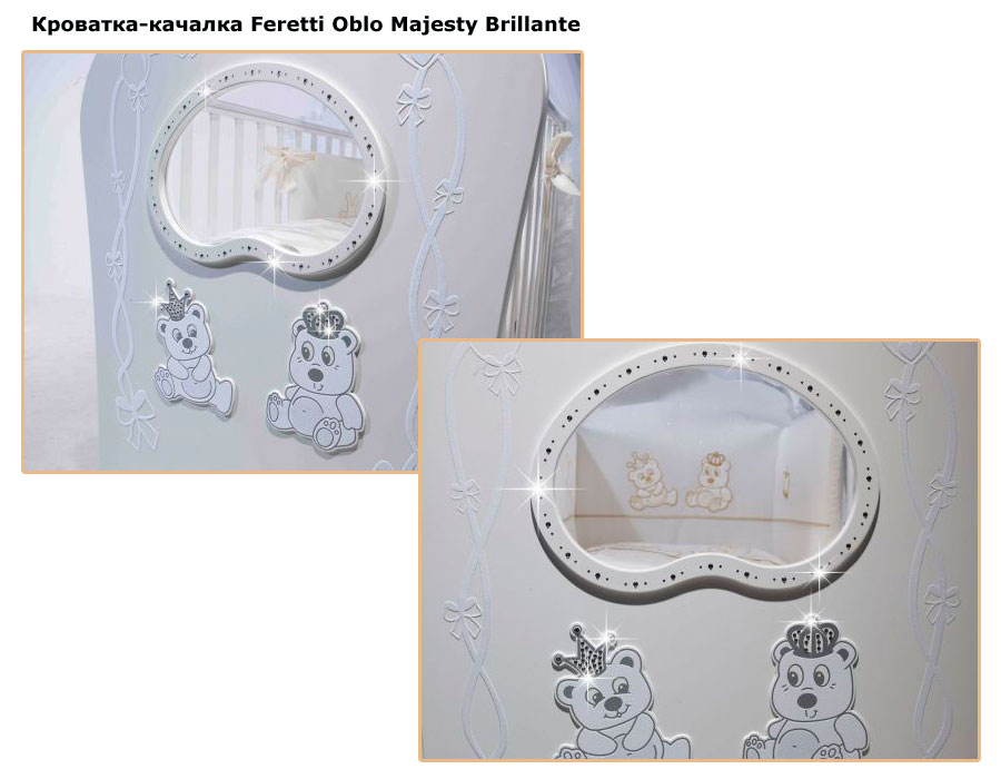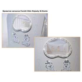 Детская кровать Feretti «FMS OBLO «MAJESTY» BRILLANTE» рассчитана для деток с рождения до 5 лет, за счет спального ложа размером 125х65 сантиметров. Кровать красивая, с плавными линиями, украшена стразами, объемным декором, что непременно послужит украшением любой детской комнаты. Оснащена модель маятником продольного качания. Ложе кровати регулируется в 2 положениях, позволяя родителям подобрать наиболее подходящие в зависимости от возраста ребенка. Дно спального места - реечное, для обеспечения правильной  осанки у ребенка, а также для создания вентиляции и  хорошего воздухообмена.