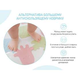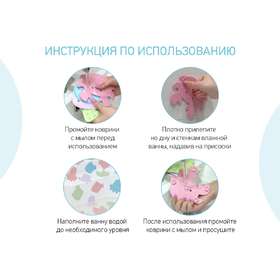 Кроме того, эти мини-коврики абсолютно не пахнут, ведь не содержат ПВХ. Они просты в уходе: достаточно просто периодически промывать их с мылом, полоскать и сушить. Они легко и надежно крепятся с помощью присосок на любую гладкую поверхность, при этом не оставляют следов.