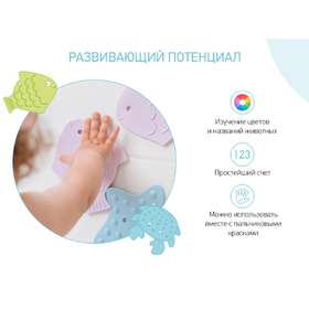 - развивашка: мало того, что это тренажер для развития мелкой моторики и хватательных рефлексов,  с мини-ковриками от ROXY-KIDS ваш малыш познакомится с названиями морских обитателей (в комлекте рыбка, осьминог, краб и морская звезда) и выучит основные цвета;