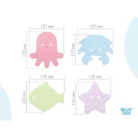 Антискользящие мини-коврики для ванны,12 шт ROXY-KIDS серия SEA ANIMALS Soft Colors арт.RBM-012-SA