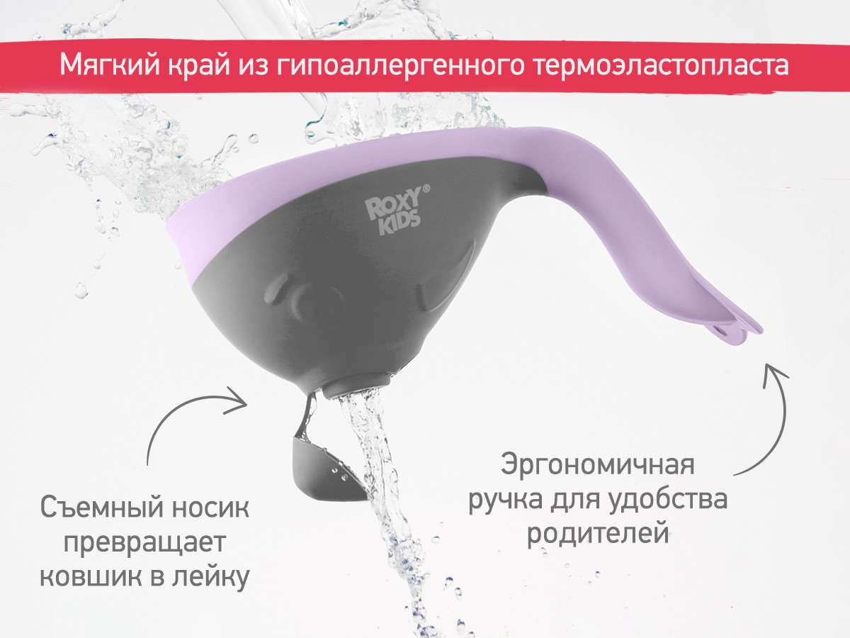 • Съемный носик, превращающий ковшик в лейку. Благодаря такому дополнению, вы сможете развеселить малыша, показывая струйки воды, а еще постепенно приучить его к душу;