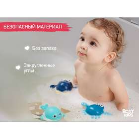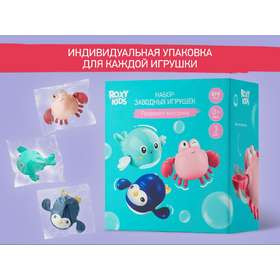 Отправьтесь в мир веселых водных приключений с набором заводных игрушек для ванны от ROXY-KIDS. Набор из 3-х игрушек идеально подойдет для купания в ванной, игр в бассейне или на пляже. Лапки игрушек вращаются на 360 градусов. Игрушки работают без батареек благодаря заводному механизму. Чтобы запустить игрушку, поверните механизм по часовой стрелке до упора и опустите игрушку в воду. Плавающие морские животные развеселят ребенка и поднимут малышу настроение! Благодаря небольшому размеру игрушки удобно держать в детской ручке. Игрушки сделаны из премиального абс-пластика с закругленными краями и абсолютно безопасны для малыша. Позвольте малышу насладиться каждым моментом купания с заводными игрушками от ROXY-KIDS!