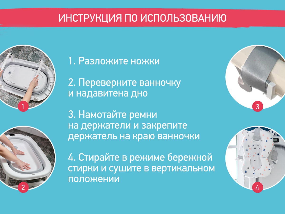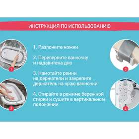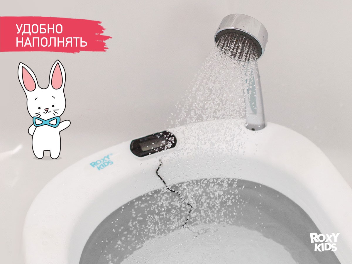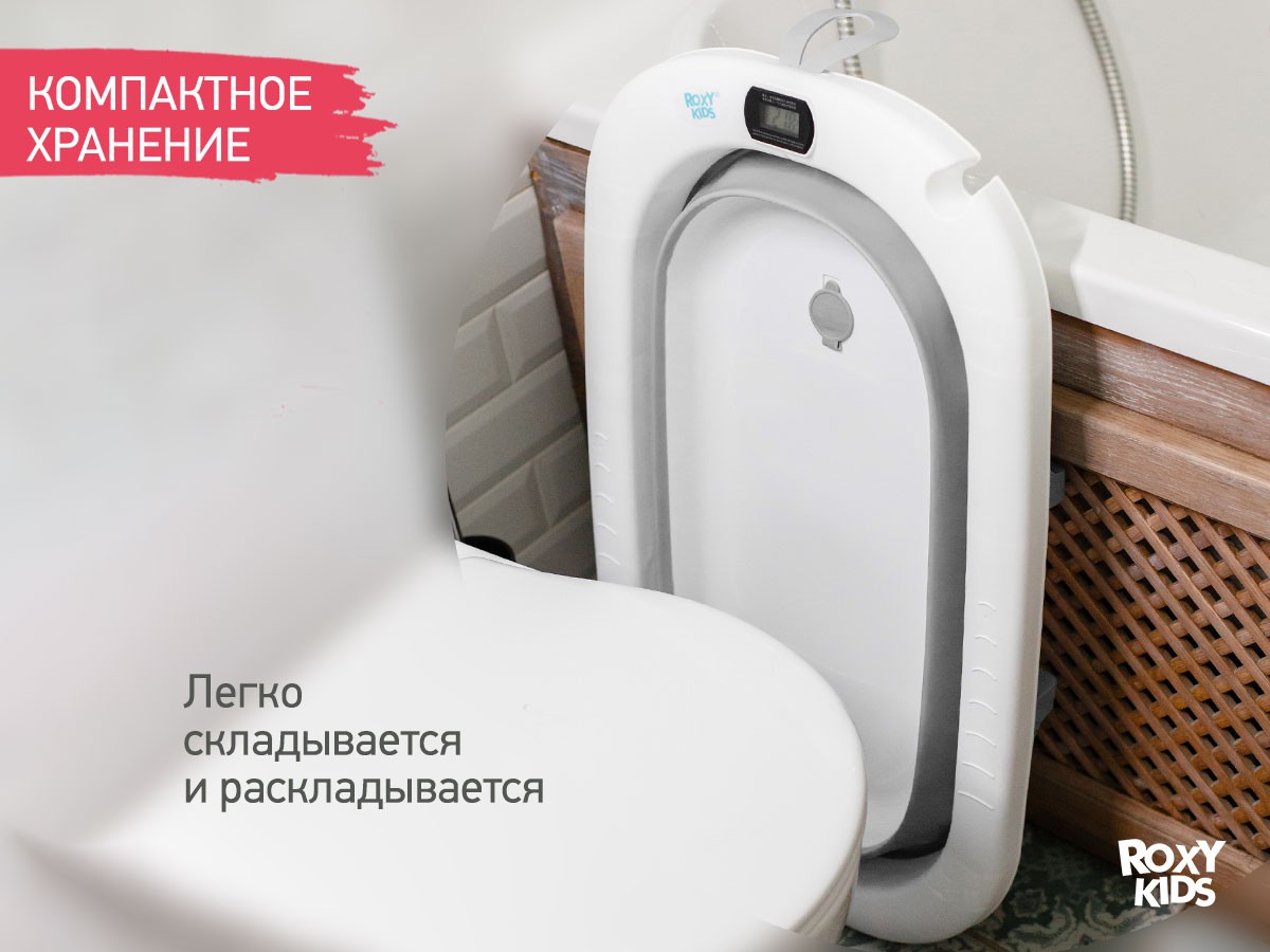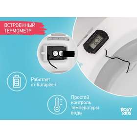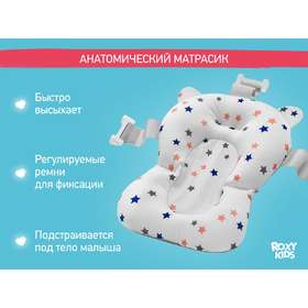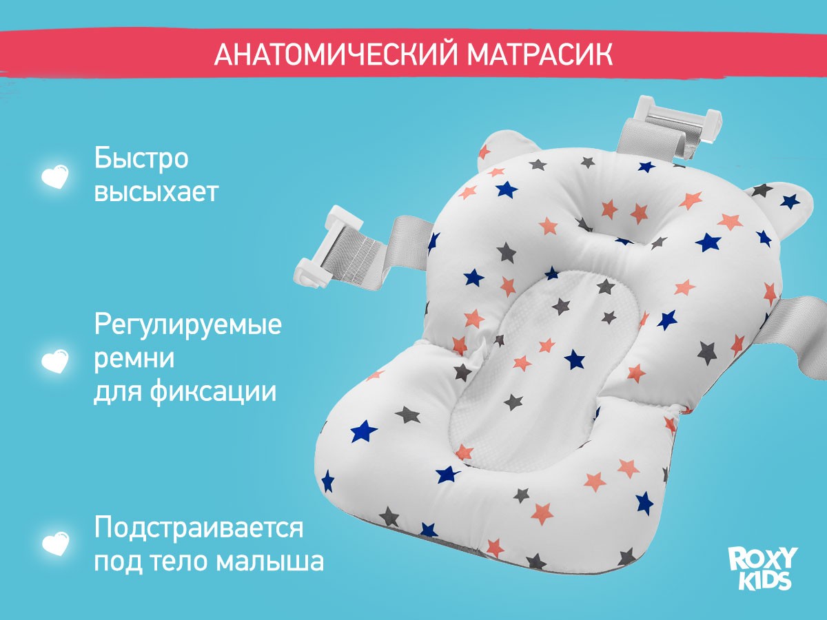 Детская складная ванночка для новорожденных с анатомическим матрасиком от ROXY-KIDS обеспечит комфортное купание с первых дней жизни. Ванночка оснащена мягким анатомическим матрасиком, который легко крепится к бортикам с помощью трех регулируемых ремней и гарантирует надежную фиксацию и комфорт для вашего малыша. Встроенный термометр позволяет легко контролировать температуру воды, а отверстие для душевой лейки облегчает процесс наполнения ванночки. Герметичная пробка обеспечивает легкость и удобство при сливе воды. Ванночка компактно складывается и оснащена петлей для крючка, поэтому не занимает много места при хранении. Ванночка изготовлена из гипоаллергенных материалов с использованием безопасных красителей. Матрасик из дышащей ткани с мягким наполнителем из гранул пенополистирола подстраивается под тело малыша, обеспечивая массажный эффект. Матрасик быстро высыхает в вертикальном положении и легко стирается в режиме бережной стирки. Устойчивые ножки и прочный пластик обеспечивают надежность и безопасность во время купания. Благодаря компактному размеру ванночку можно разместить в ванной, душевой кабине или на полу. В первые месяцы вы сможете купать новорожденного малыша в положении лежа с помощью анатомического матрасика. Когда малыш подрастет и начнет сидеть самостоятельно, горку можно будет снять, после чего противоположная стенка ванночки станет удобной спинкой для поддержки ребенка.