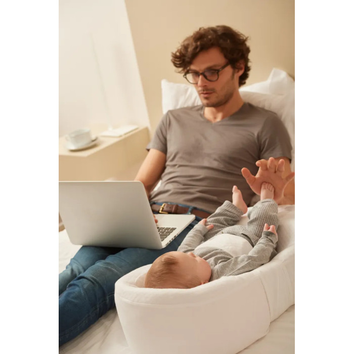 В комплекте с коконом Cocoonababy®: регулируемый ограничитель, позволяющий кокону расти вместе с ребенком, чехол из фирменного хлопка Fleur de Coton®, подстраховывающий пояс.