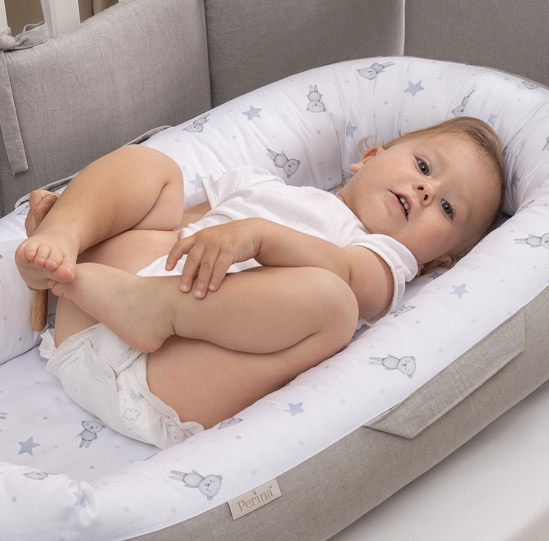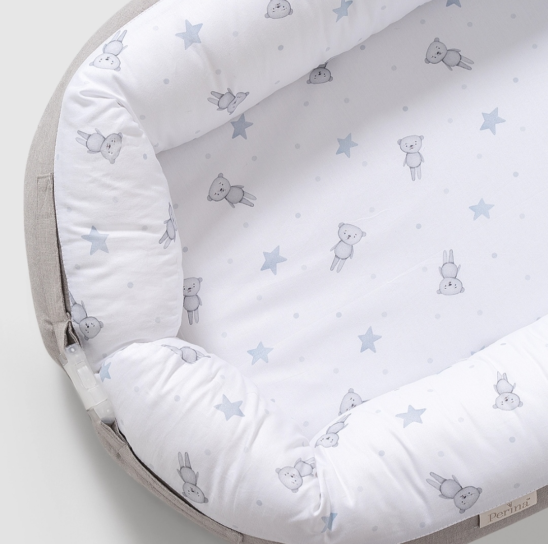 Гнёздышко выполнено из натурального хлопка Eco Soft Cotton. Это очень мягкая разновидность хлопка, который отлично пропускает воздух и долго остается как новый даже после многократных стирок. Его секрет в специальном способе создания узора без окрашивания.