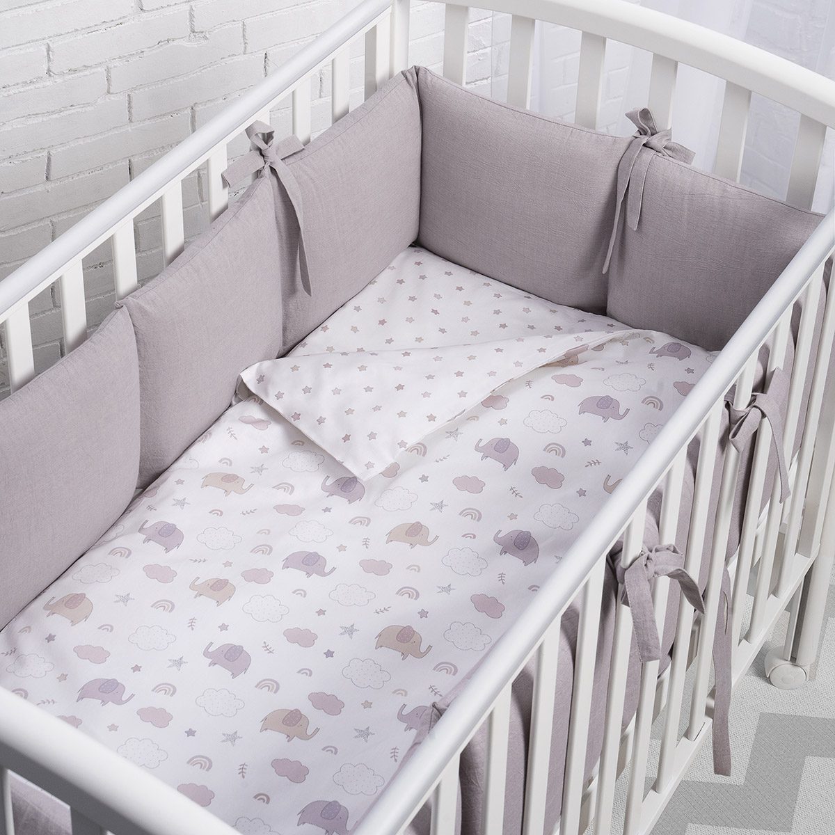 Новинка от Perina — нежные и практичные бортики, которые подойдут для любого спального места: прямоугольного, круглого или овального. Чехлы из натурального хлопка Eco Soft Cotton. Это очень мягкая разновидность хлопка, который отлично пропускает воздух и долго остается как новый даже после многократных стирок. Его секрет в специальном способе создания узора без окрашивания.