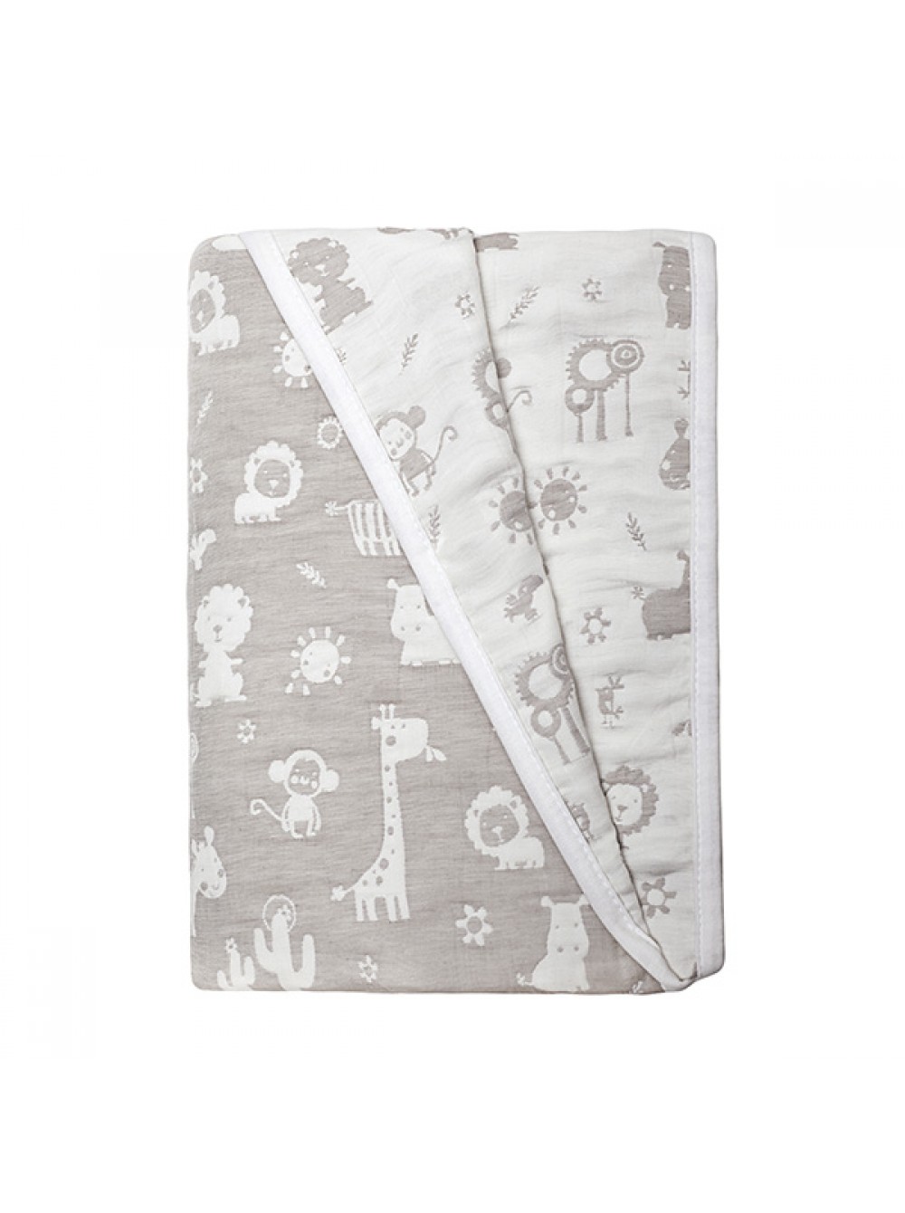 Стильное и практичное решение — двусторонний дизайн пледа. «Зоопарк» из милых зверюшек в узоре понравится и родителям, и малышу.