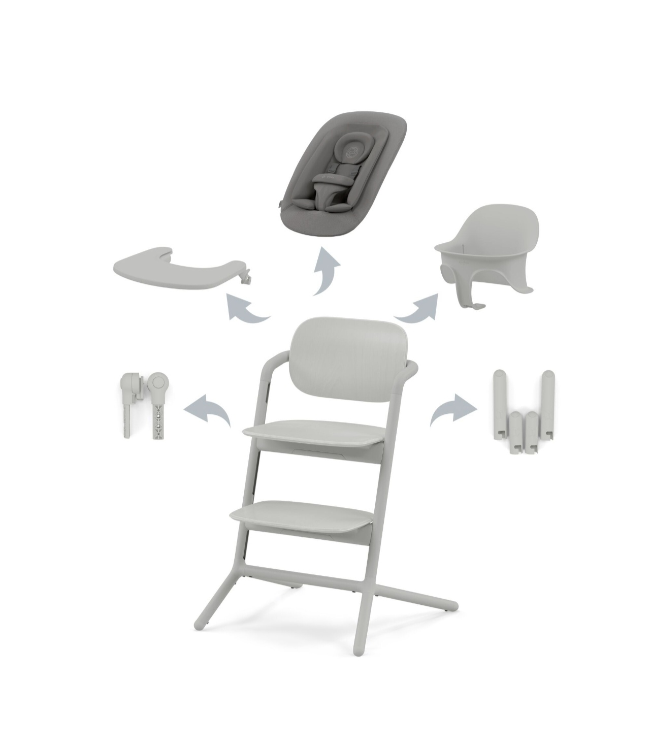 Кресло Lemo идеально подходит для всей семьи благодаря множеству конфигураций, позволяющих настроить его под любой возраст. Для малышей есть шезлонг-гнездо, который можно использовать как отдельно на подставке, так и установить на кресло. Детский набор помогает детям научиться сидеть, когда они к этому готовы, а тренировочная башня Lemo помогает детям постарше исследовать окружающий мир.