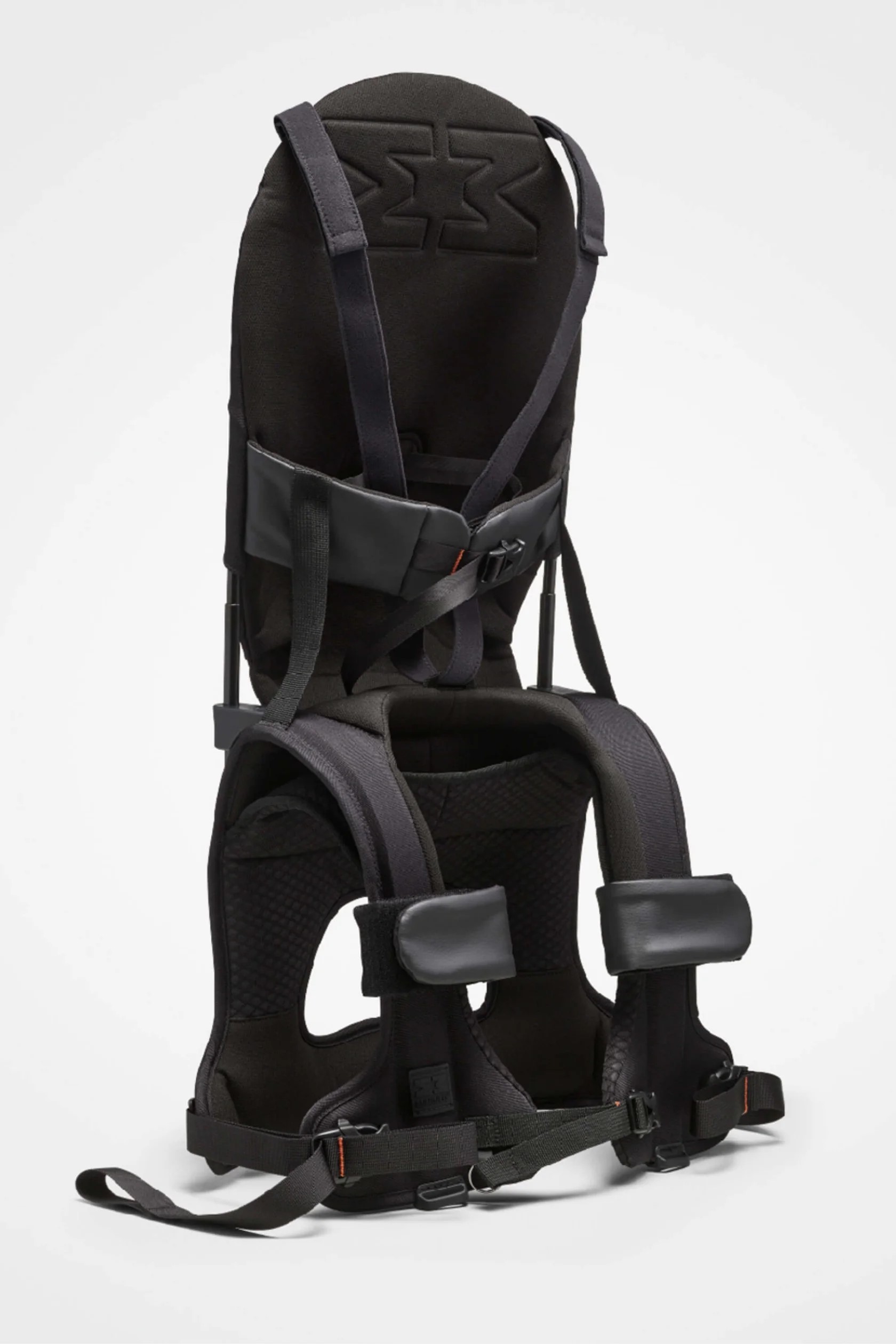 Пока вы познаете мир, ваш ребенок надежно сидит у вас на плечах, закрепленный поясным ремнем и ножными ремнями. Оба выполнены из стильной искусственной кожи.