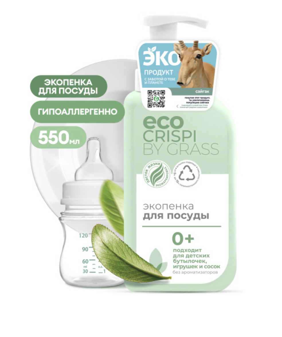 CRISPI Экопенка для мытья посуды, детской посуды, игрушек, бутылочек и сосок (флакон 550мл)
